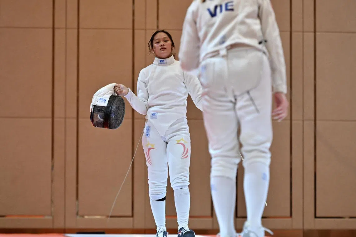 Singapore’s Elle Koh Meihui winning against Vietnam in the women’s epee final on May 13, 2023.