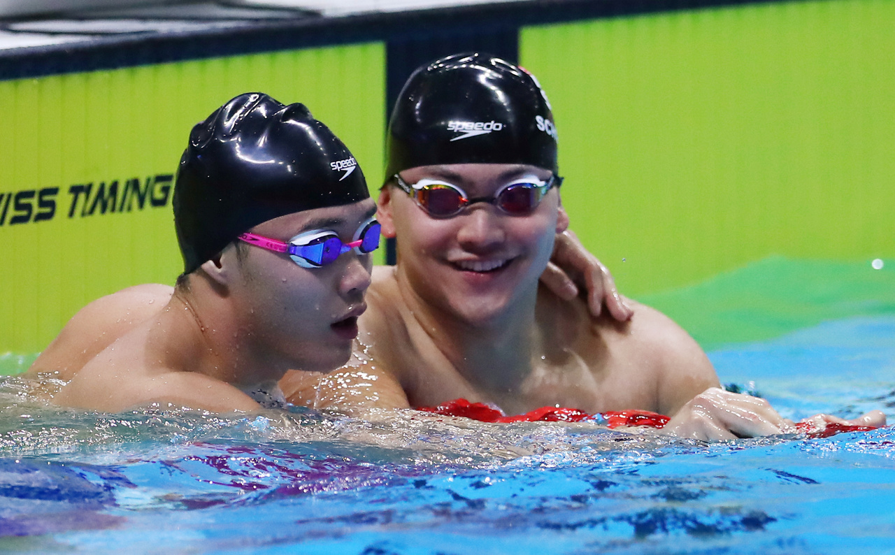Newly crowned 50m fly champion Teong said: "He's my brother, we train in and out every day and I just got this one and he's got many ahead of him. I'm just happy that Singapore both got on the podium."