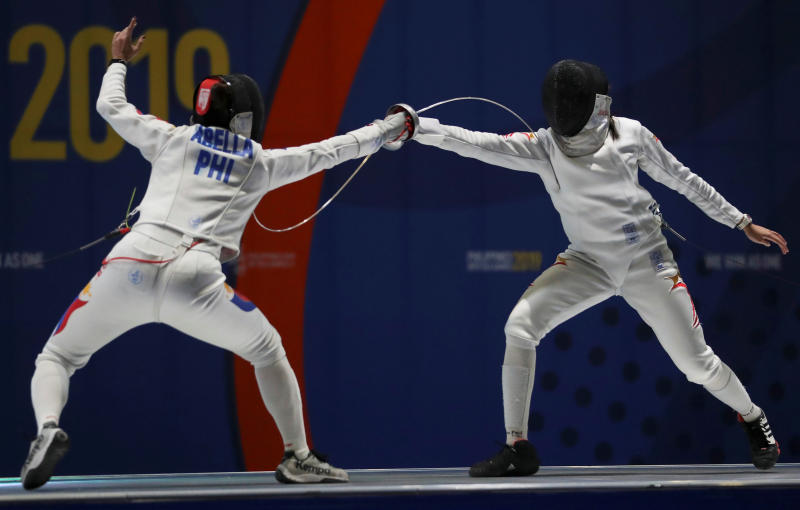 Kiria Tikanah Abdul Rahman (right) emerged victorious in the women's individual epee final on SEA Games in Philippines on Dec 4, 2019.