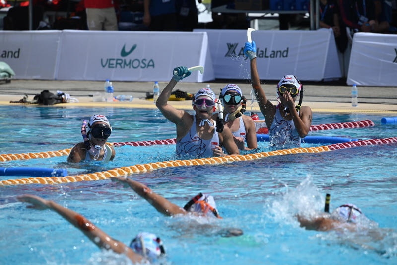 The Singapore underwater hockey women's team (above) came up trumps against the Philippines, winning 4-2.