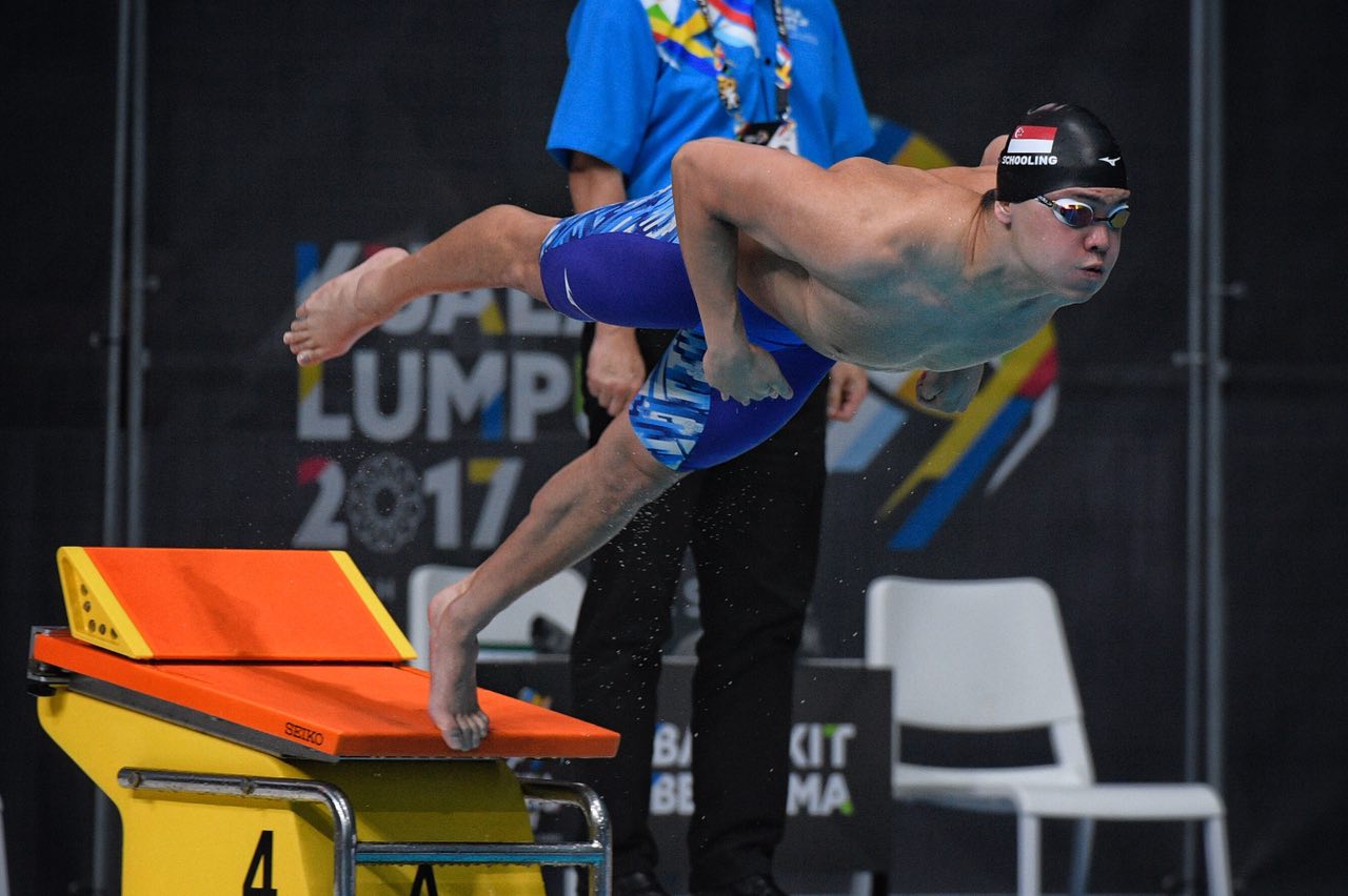 Singapore's Joseph Schooling leaping from the starting blocks during the men's 50m butterfly final at the SEA Games on Aug 21, 2017.
