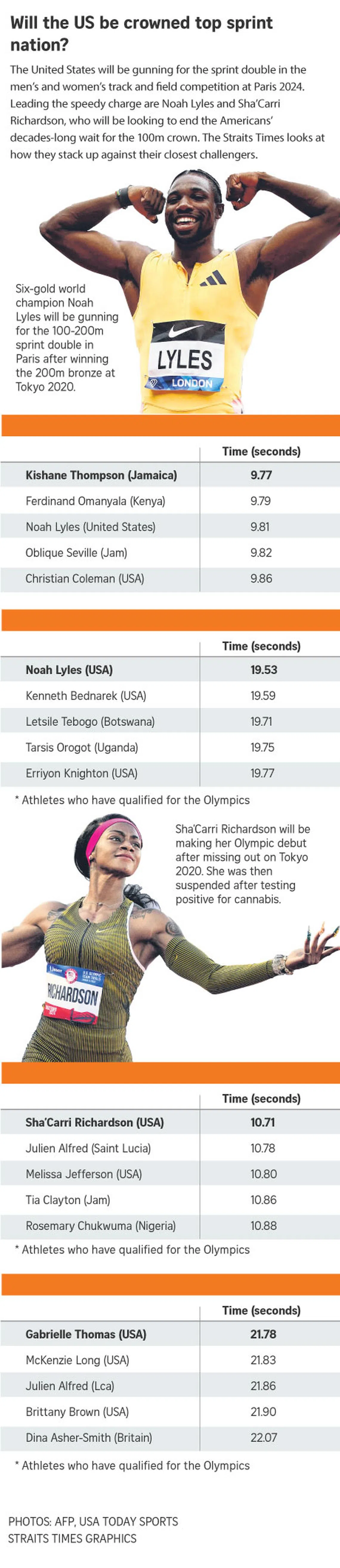 Sha’Carri Richardson, Noah Lyles lead US quest to reclaim sprint golds at Olympics