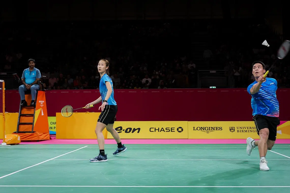 Singapore’s Terry Hee and Jessica Tan in action during the Commonwealth Games mixed doubles final.