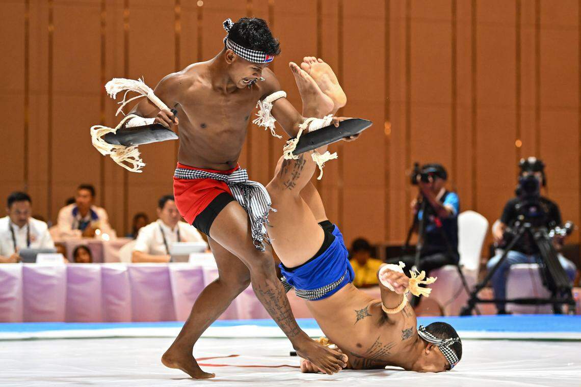 Titsovathanak Kim and Vutha Yim from Cambodia competing in the men's duo performance in Kun Bokator on May 8.