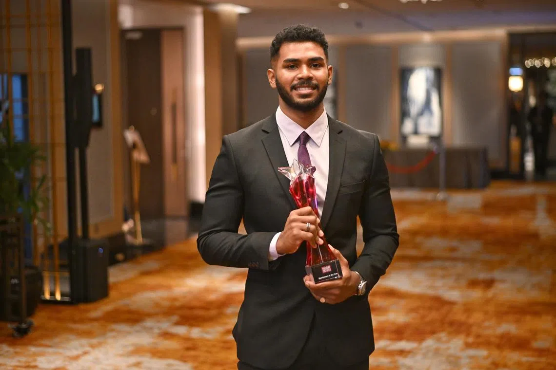 Sheik Farhan Sheik Alauddin claims Sportsman of the Year for the first time at the Singapore Sports Awards 2023, at Orchard Hotel on Aug 23, 2023.