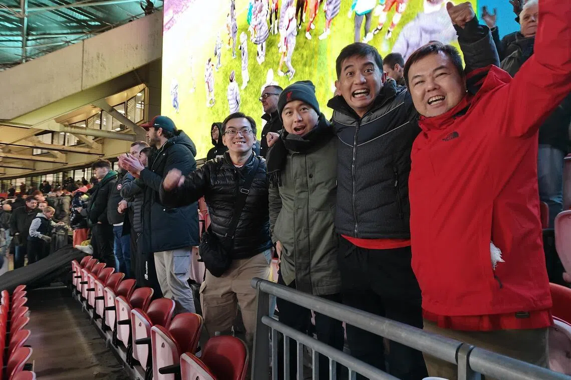 Aaron Kok (second from right) with friends at Wembley Stadium in London for the League Cup final in February 2024.