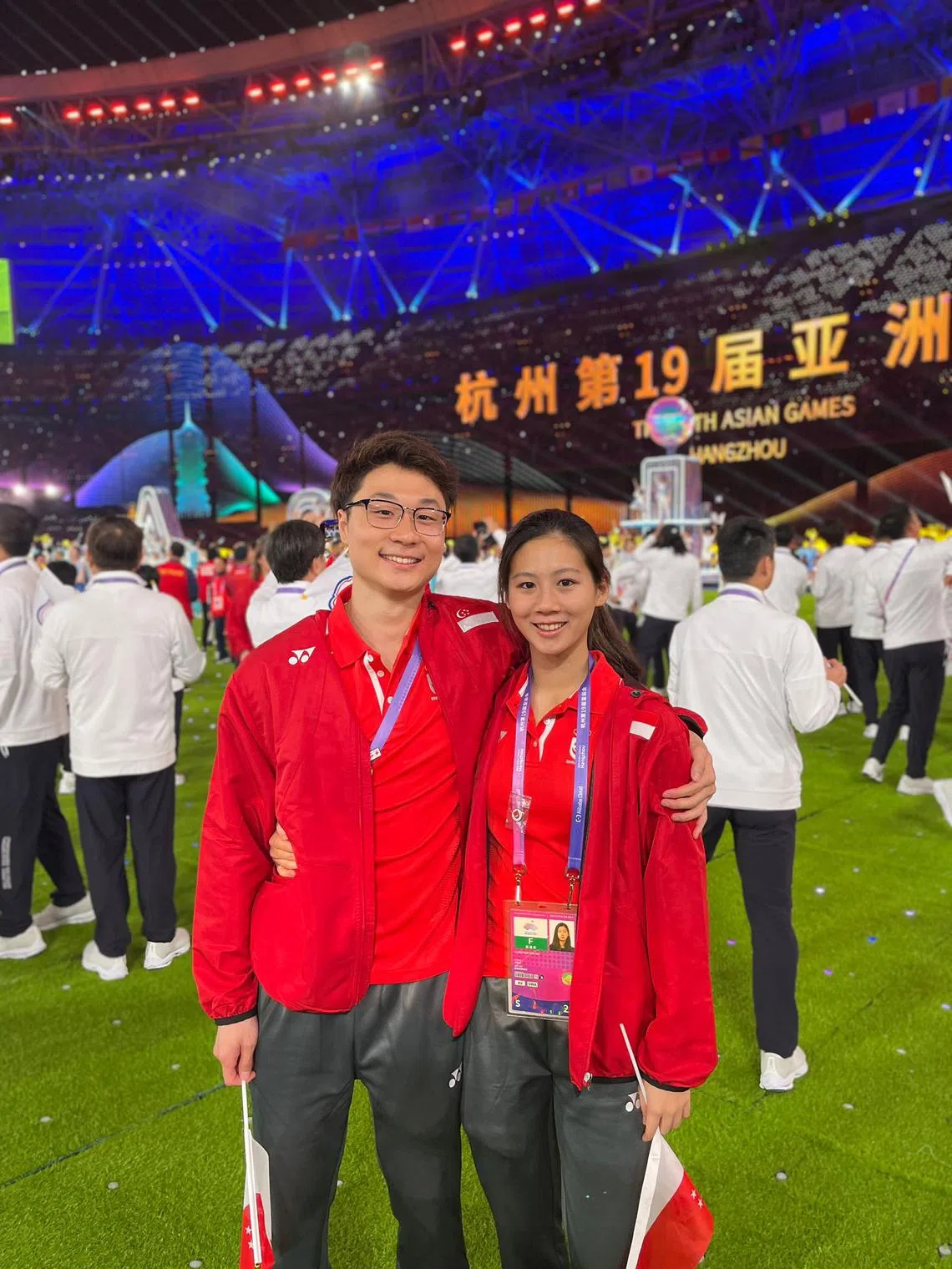 Ritchie Oh with his girlfriend Claire Tan, a national artistic swimmer, at the Hangzhou Asian Games in 2023.