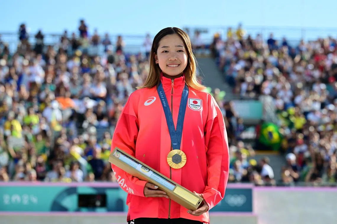 PARIS – Japan’s 14-year-old Coco Yoshizawa led a trio of teens on the podium in the women’s street skateboarding at the Paris Olympics on July 28, in front of a sell-out crowd at the La Concorde venue.