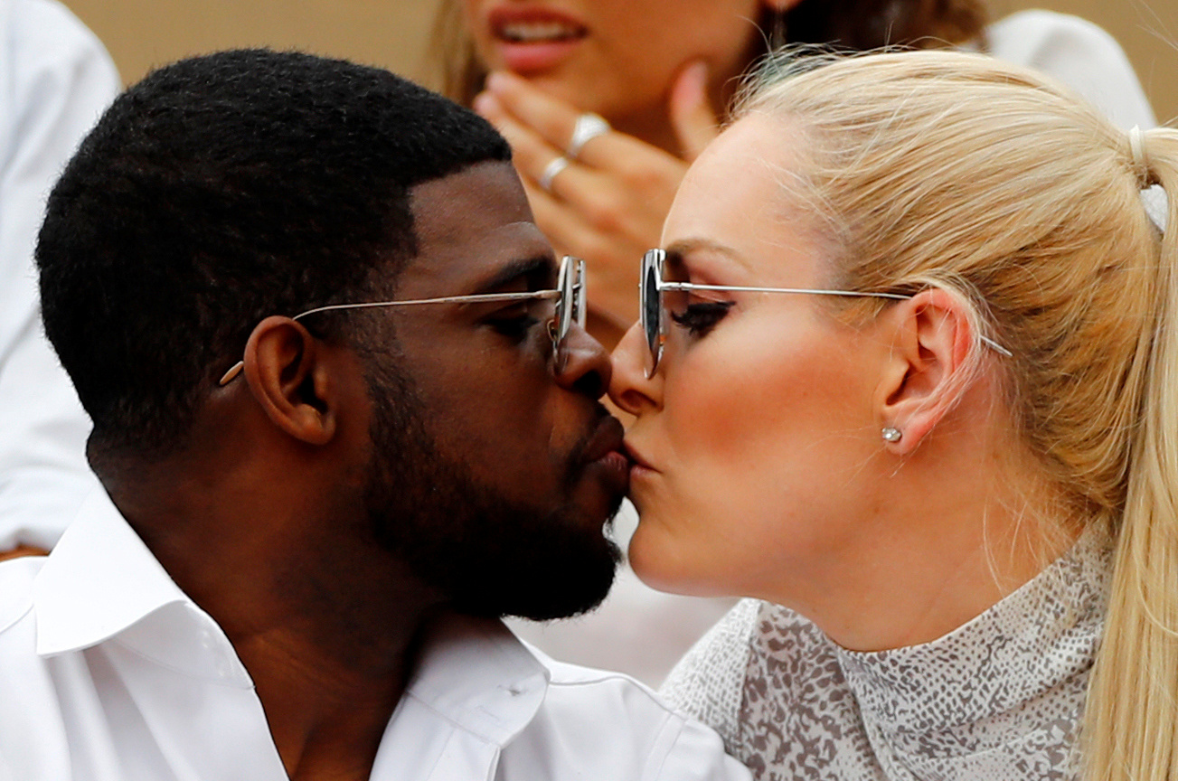 Vonn and Subban kiss while watching the French Open in May 2019.