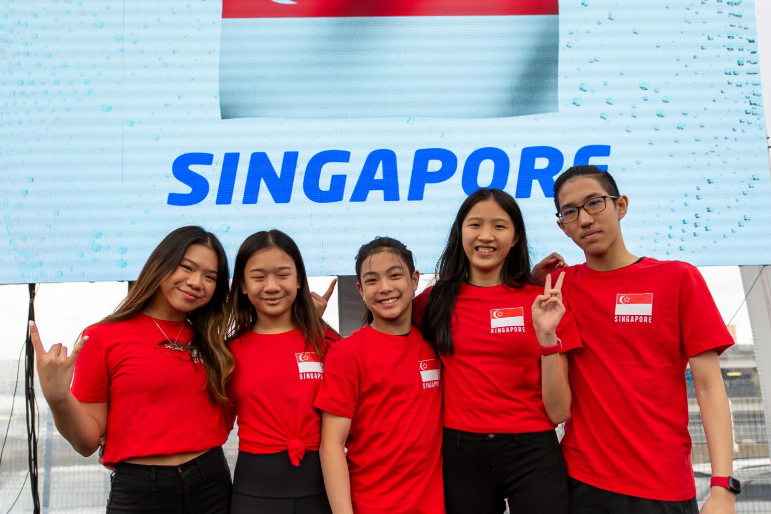(From left) Kyra Poh, Vera Poh, Kai Minejima Lee, Isabelle Koh and Jordan Lee at the FAI World Cup of Indoor Skydiving.