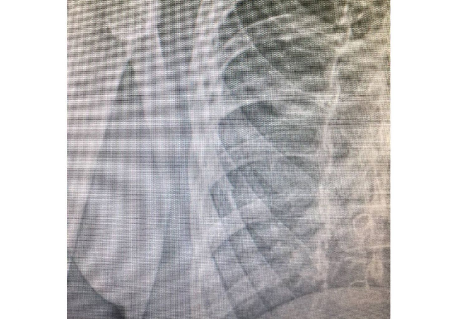 She hit a rough landing, causing her leg to be caught in a fence and landed on the ground chest first.