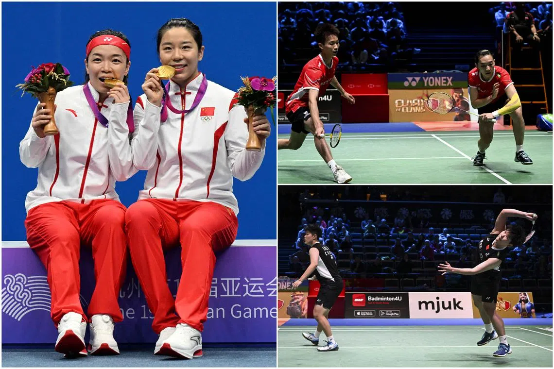 (Clockwise from left) Women’s doubles duo Chen Qingchen and Jia Yifan, mixed doubles outfit Jiang Zhenbang and Wei Yaxin, and women’s doubles partnership Tan Ning and Liu Shengshu.
