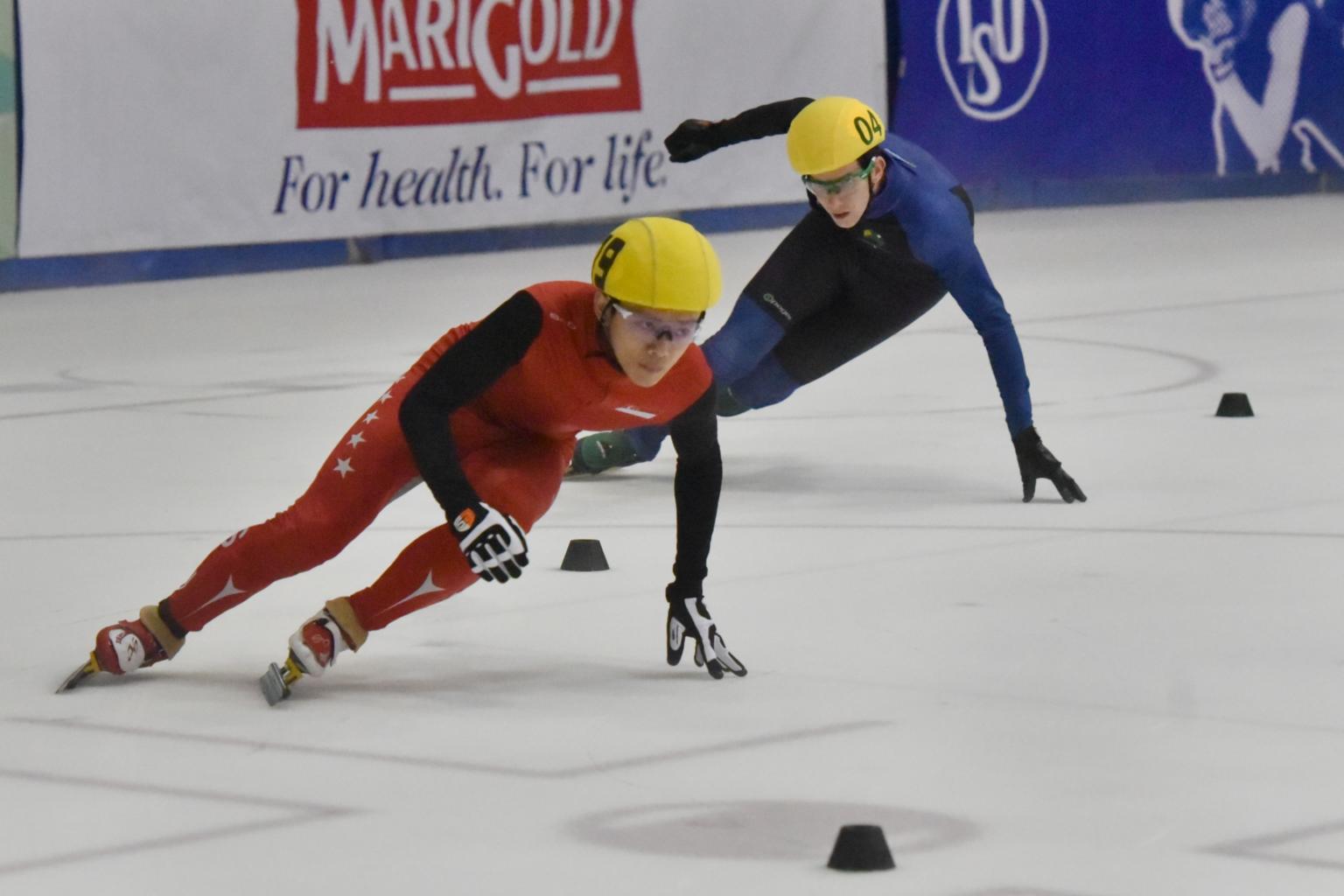 Singapore's Lucas Ng and Australia's Luke Cullen in action in the 500m race of the SEA Open Short Track Trophy on Jan 5, 2019.