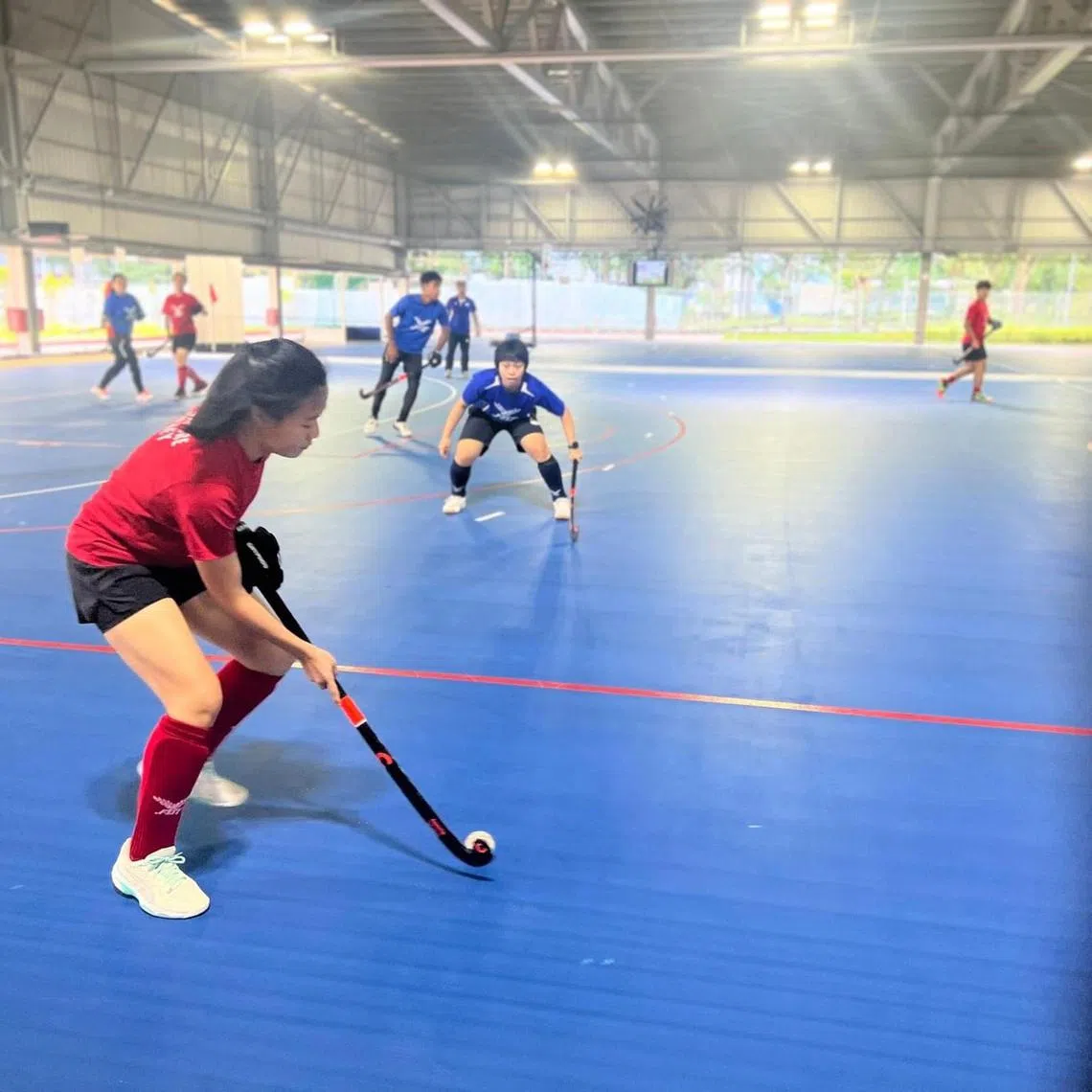 Sports enthusiasts playing sports like football and hockey at the ActiveSG Sport Village@ Jurong Town.