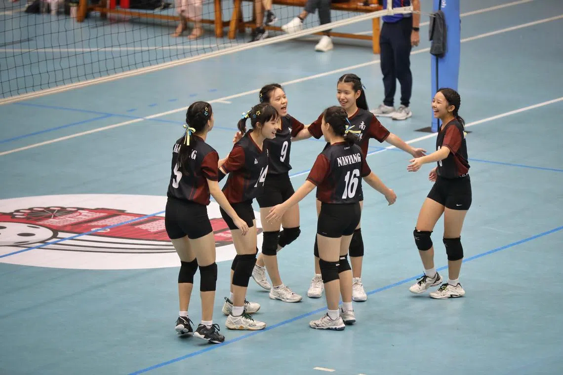 Nanyang Girls’ High School showed great camaraderie during their B Division Girls’ volleyball final.