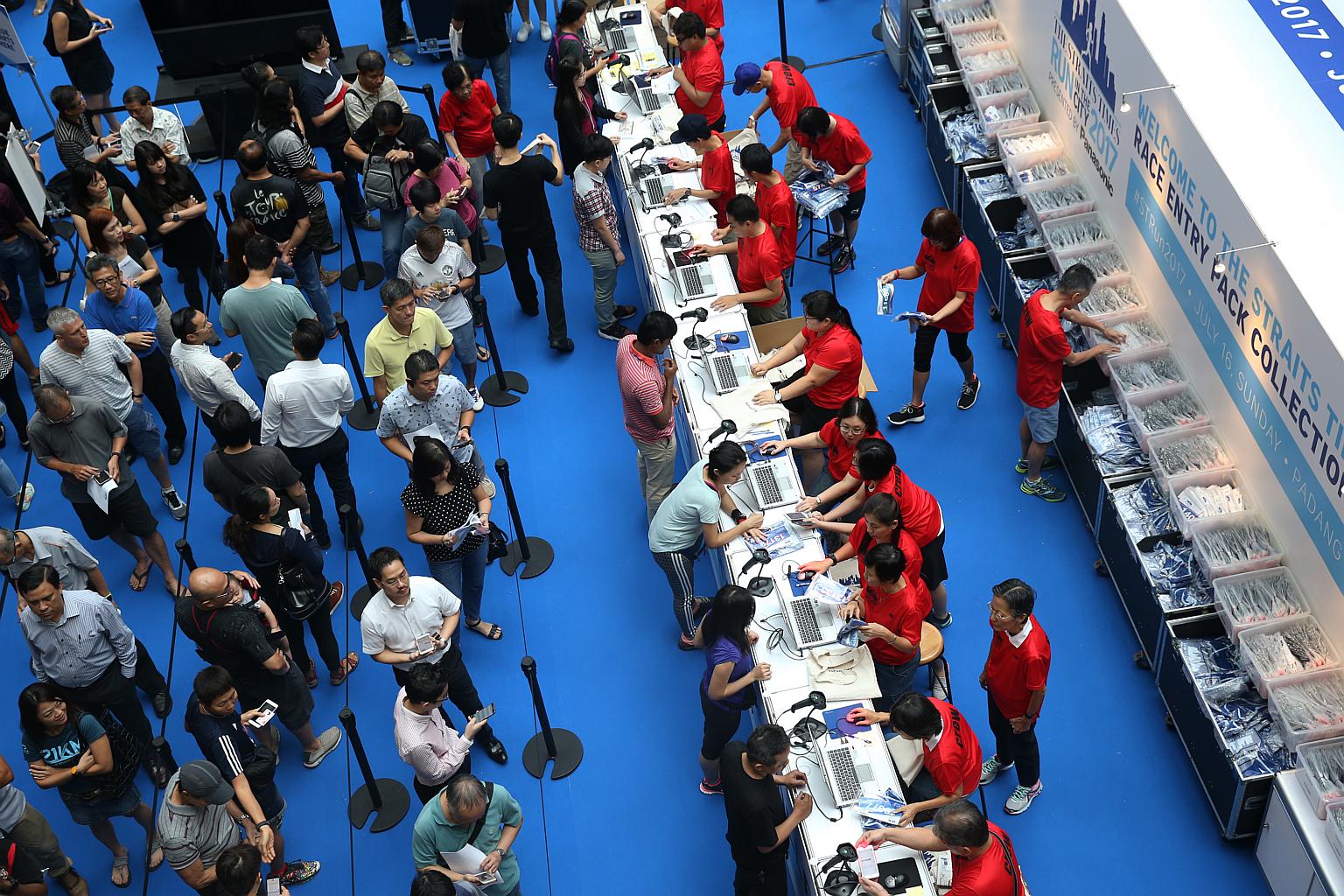 Race participants collecting their ST Run Race Pack at Suntec City on July 6, 2017.