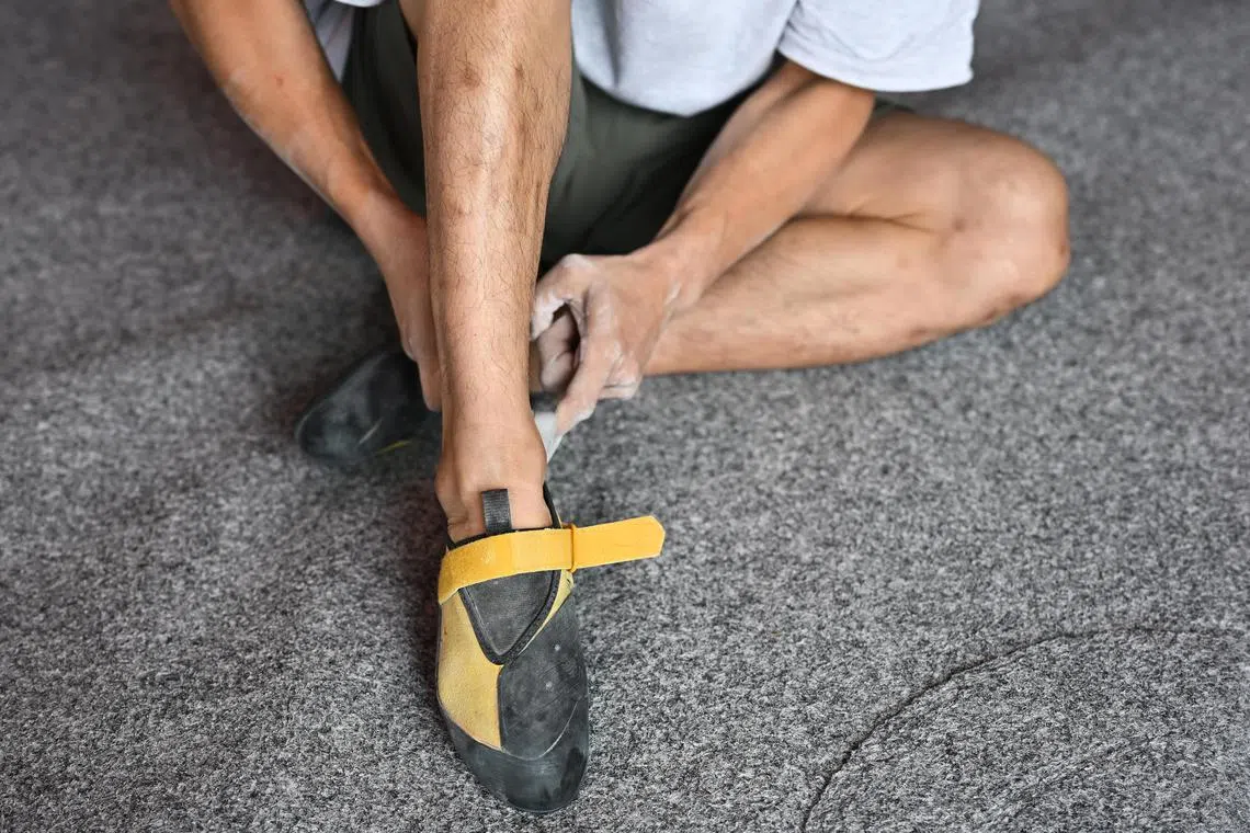 Bouldering is a form of free climbing on small rock formations or artificial rock walls without the use of ropes or harnesses, although most climbers use chalk and climbing shoes for better grip.