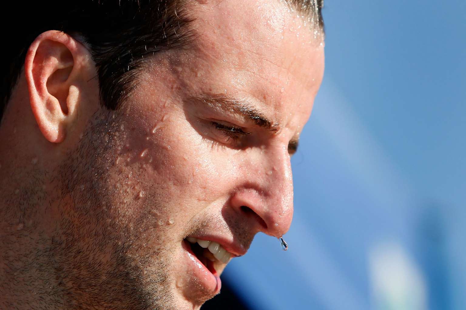 James Magnussen looks on after winning the 100m freestyle final at the 2016 Arena Pro Swim Series on June 5, 2016, in Santa Clara, California.