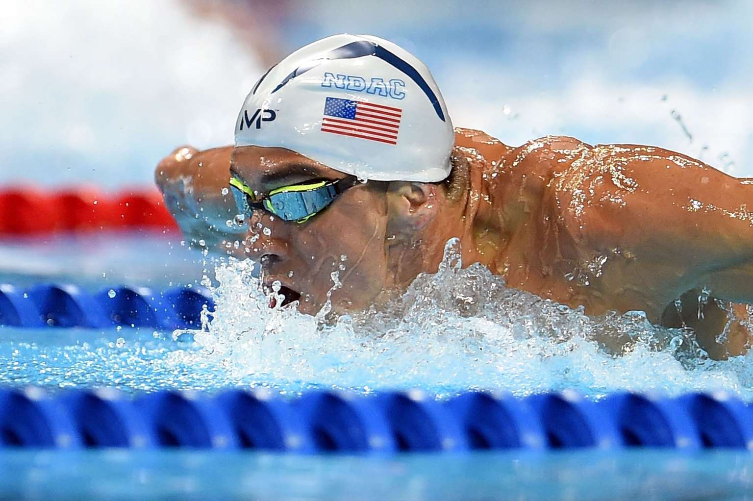 Michael Phelps competes in a preliminary heat of the men's 200m butterfly.