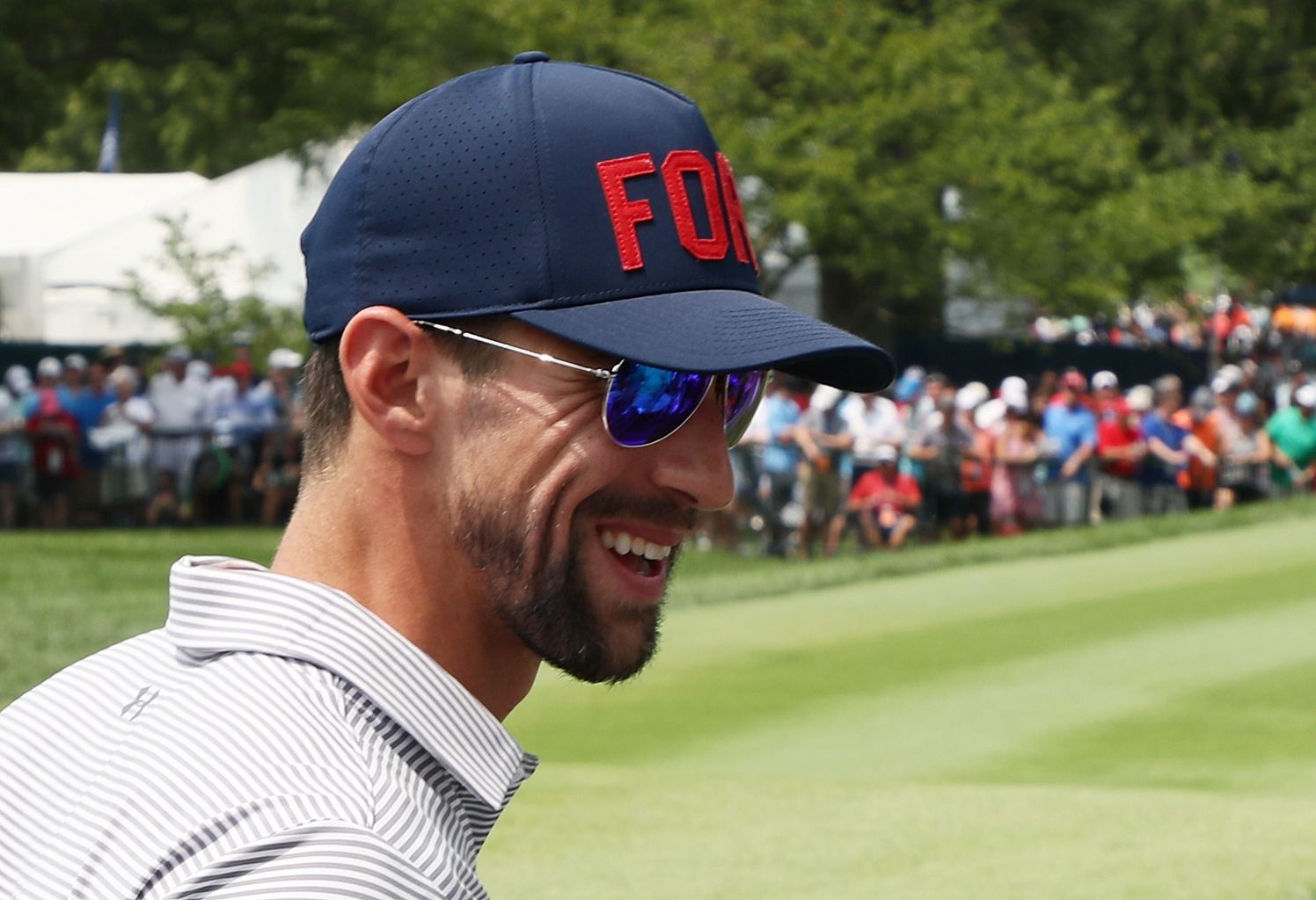 Phelps looking on during the final round of golf in the 2018 PGA Championship on Aug 12, 2018.