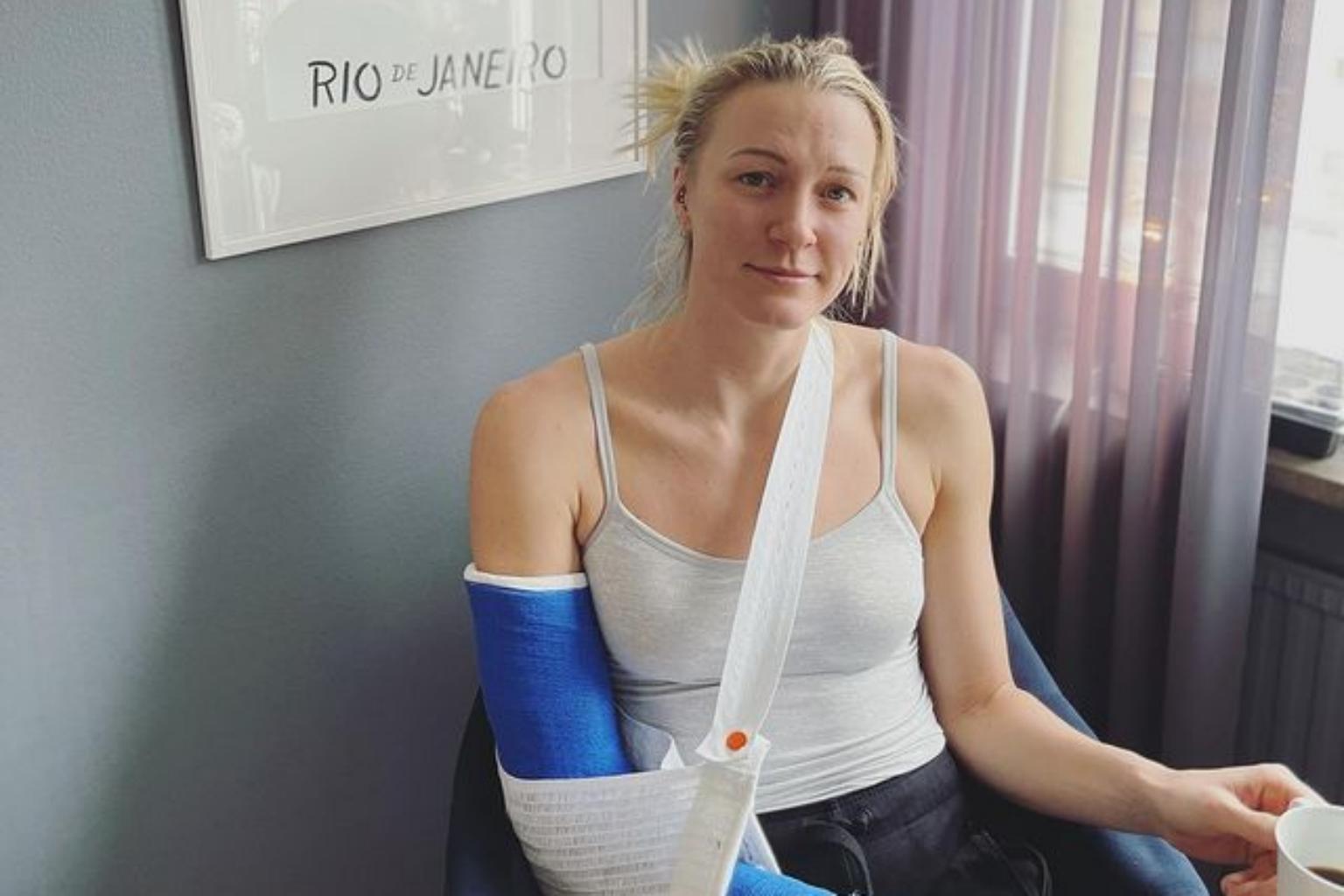 "Yesterday I slipped badly on the ice and broke my elbow when I fell on the ground," Sjostrom wrote on Instagram.