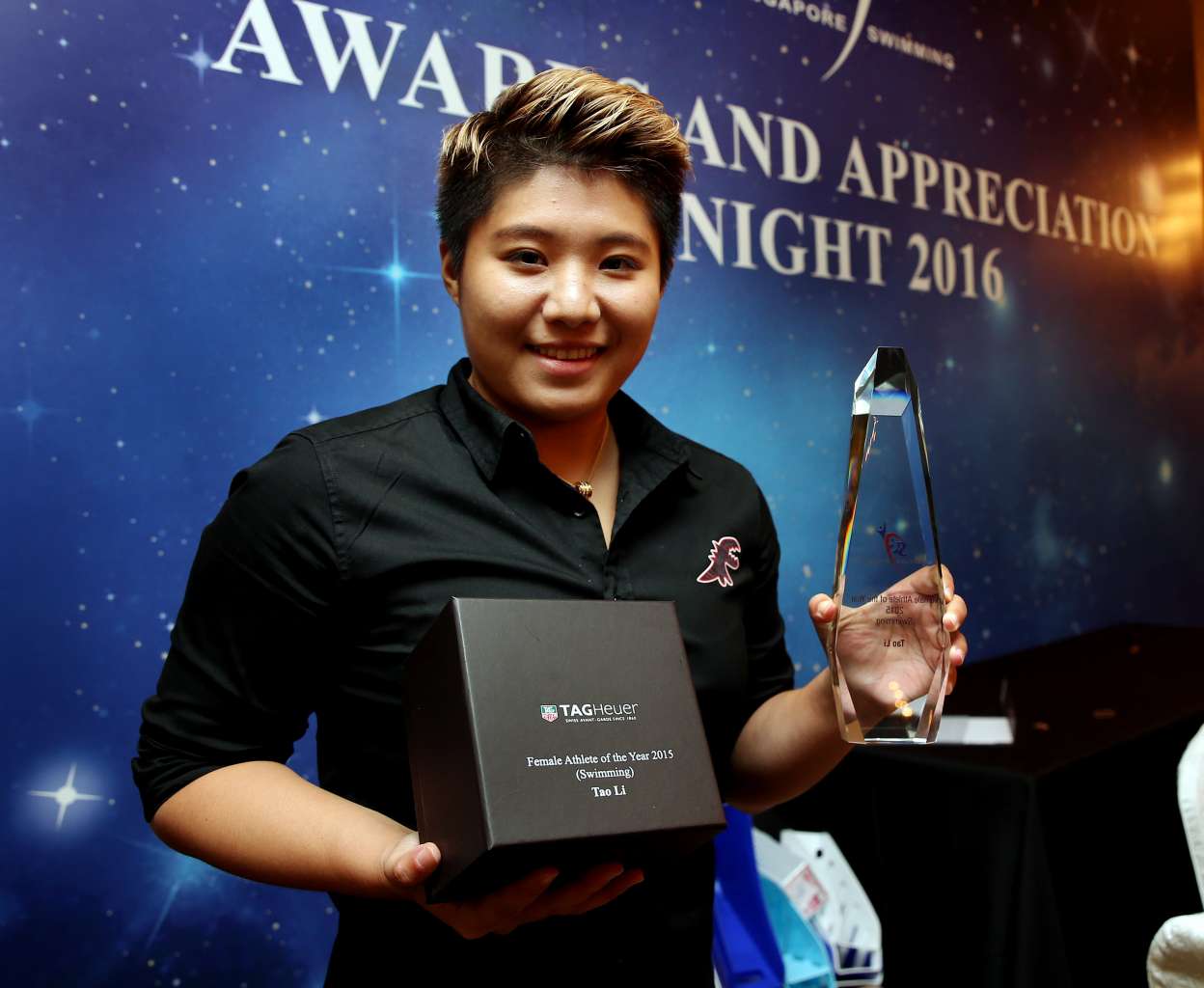 Tao Li was crowned the female Athlete of the Year (swimming) at the Singapore Swimming Association (SSA) awards and appreciation night.