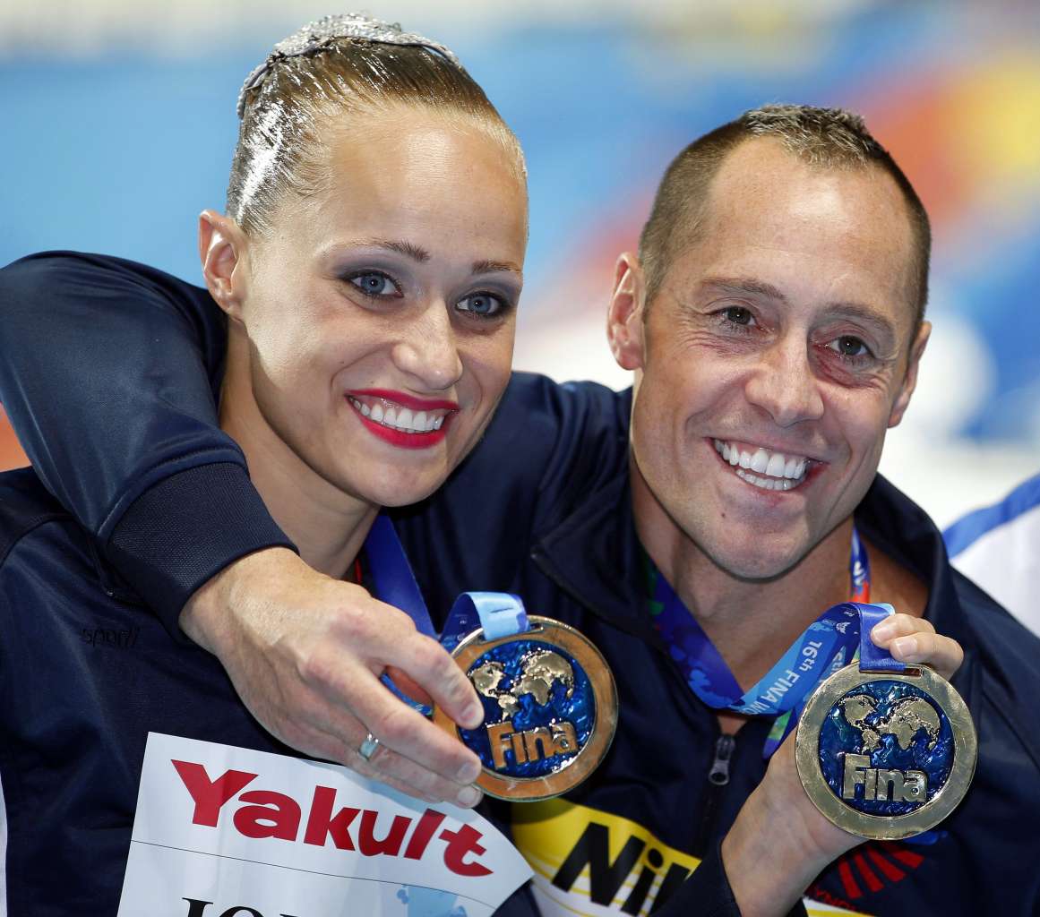 Christina Jones (left) and Bill May at the FINA Swimming World Championships in Kazan, Russia on July 26, 2015.