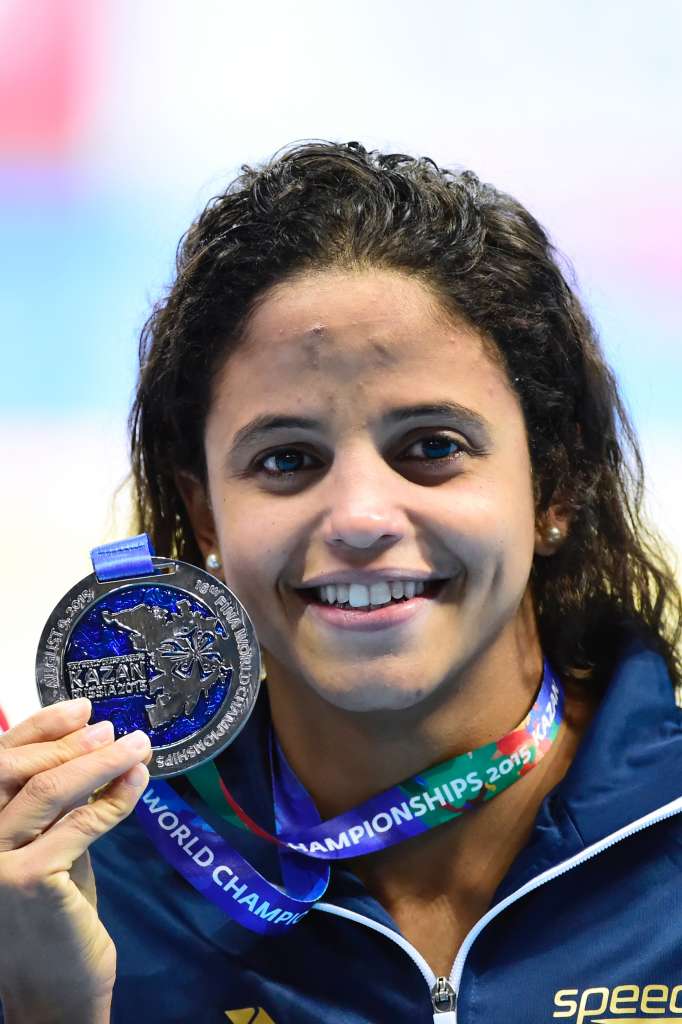 She won silver in the 50m backstroke at last year's world championships in Kazan, and was the first Brazilian woman to win swimming gold at a Pan American Games with her 100m backstroke gold in Toronto in 2015.