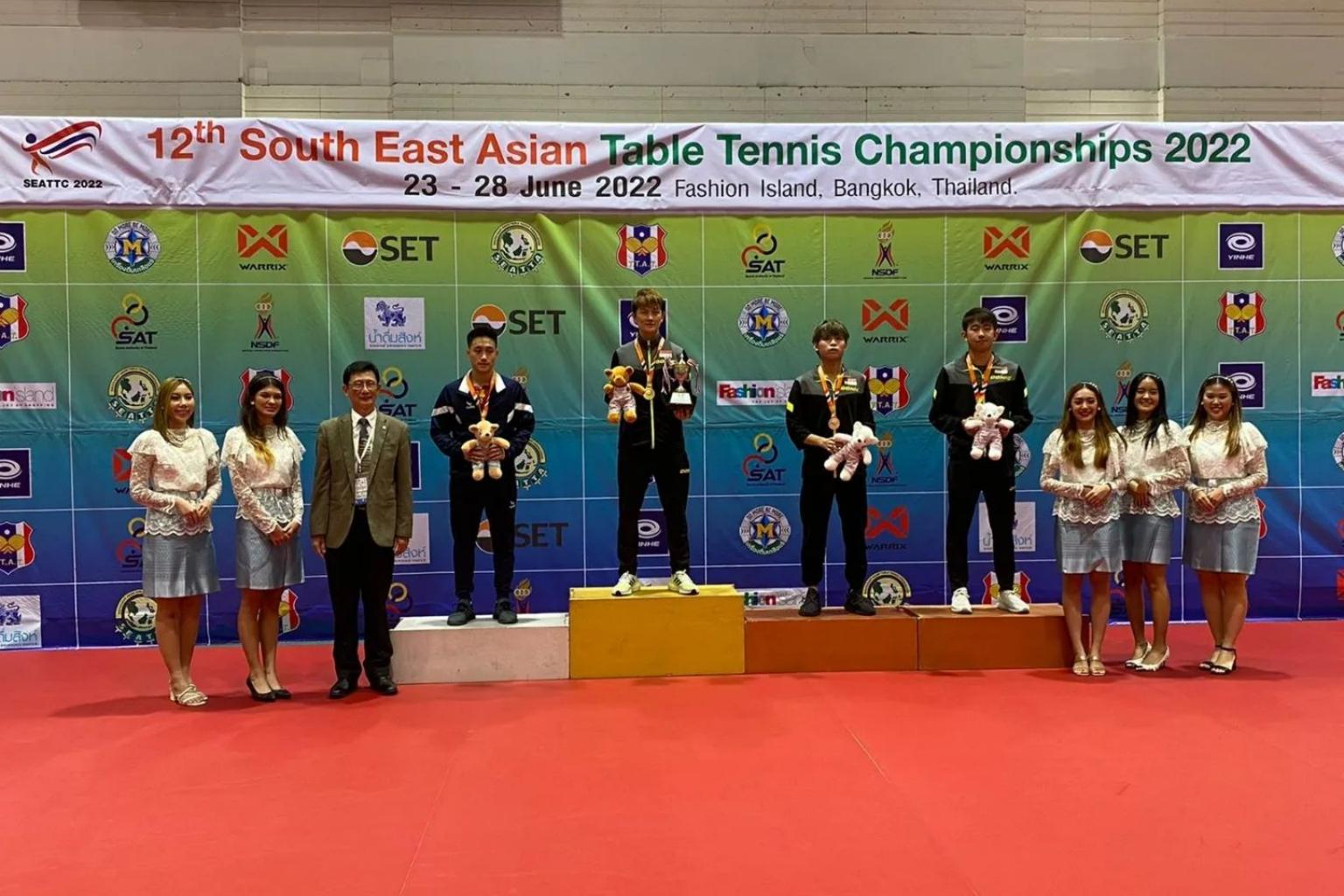 Clarence Chew delivered a golden hat-trick. In the men's singles final on Tuesday (June 28), he came from behind to beat Vietnam's Nguyen Anh Tu 4-2 (7-11, 9-11, 11-9, 11-6, 25-23, 11-4). He also teamed up with Ethan Poh to beat compatriots Koen Pang and Izaac Quek 3-2 (4-11, 11-6, 10-12, 11-8, 11-3) in the men's doubles final.