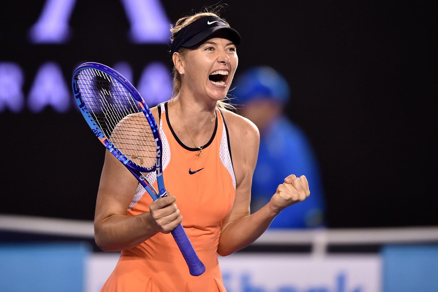 Maria Sharapova celebrates after winning her women's singles match against Switzerland's Belinda Bencic during the 2016 Australian Open tennis tournament.
