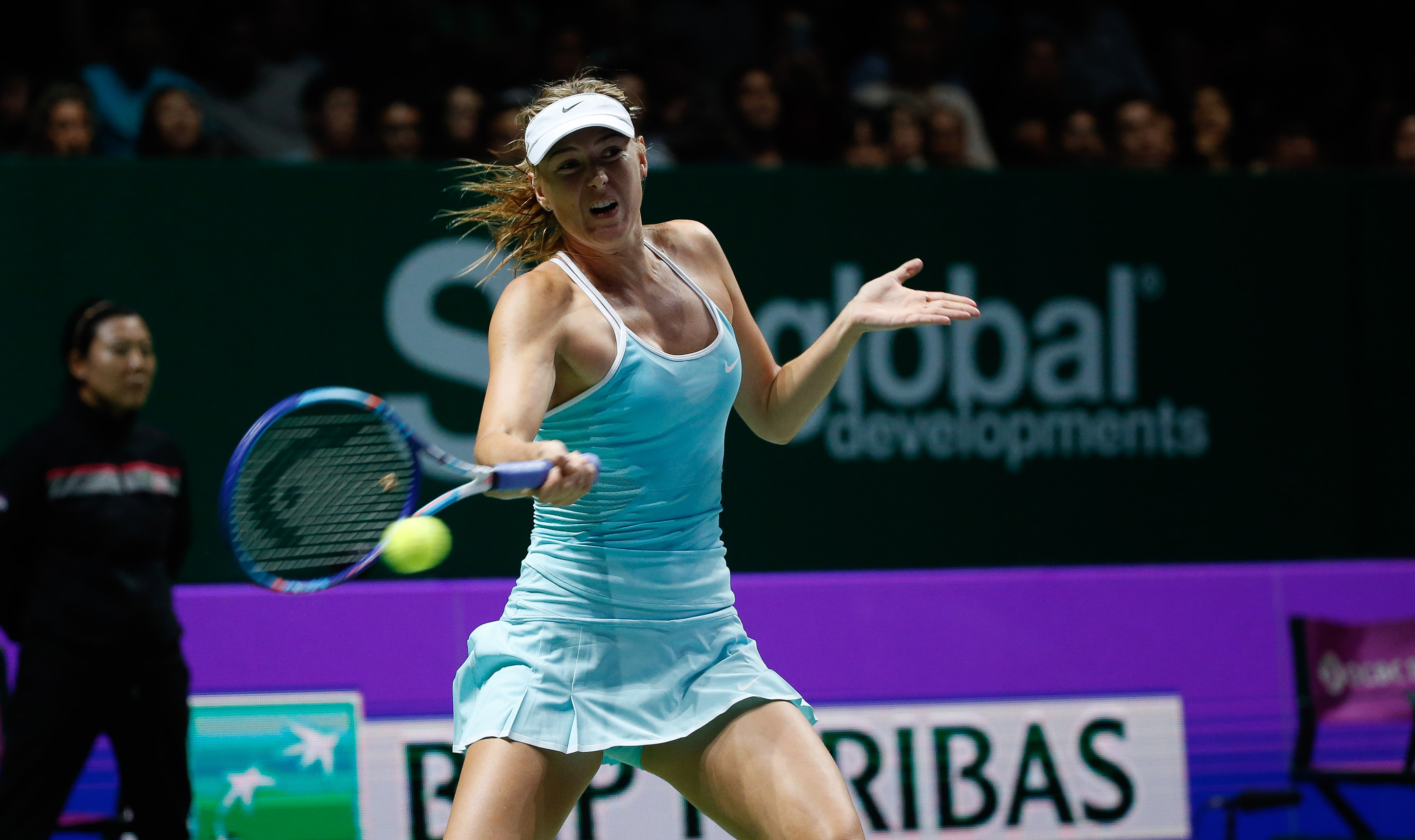 Maria Sharapova in action during the BNP Paribas WTA Finals Singapore, on Oct 27, 2015.