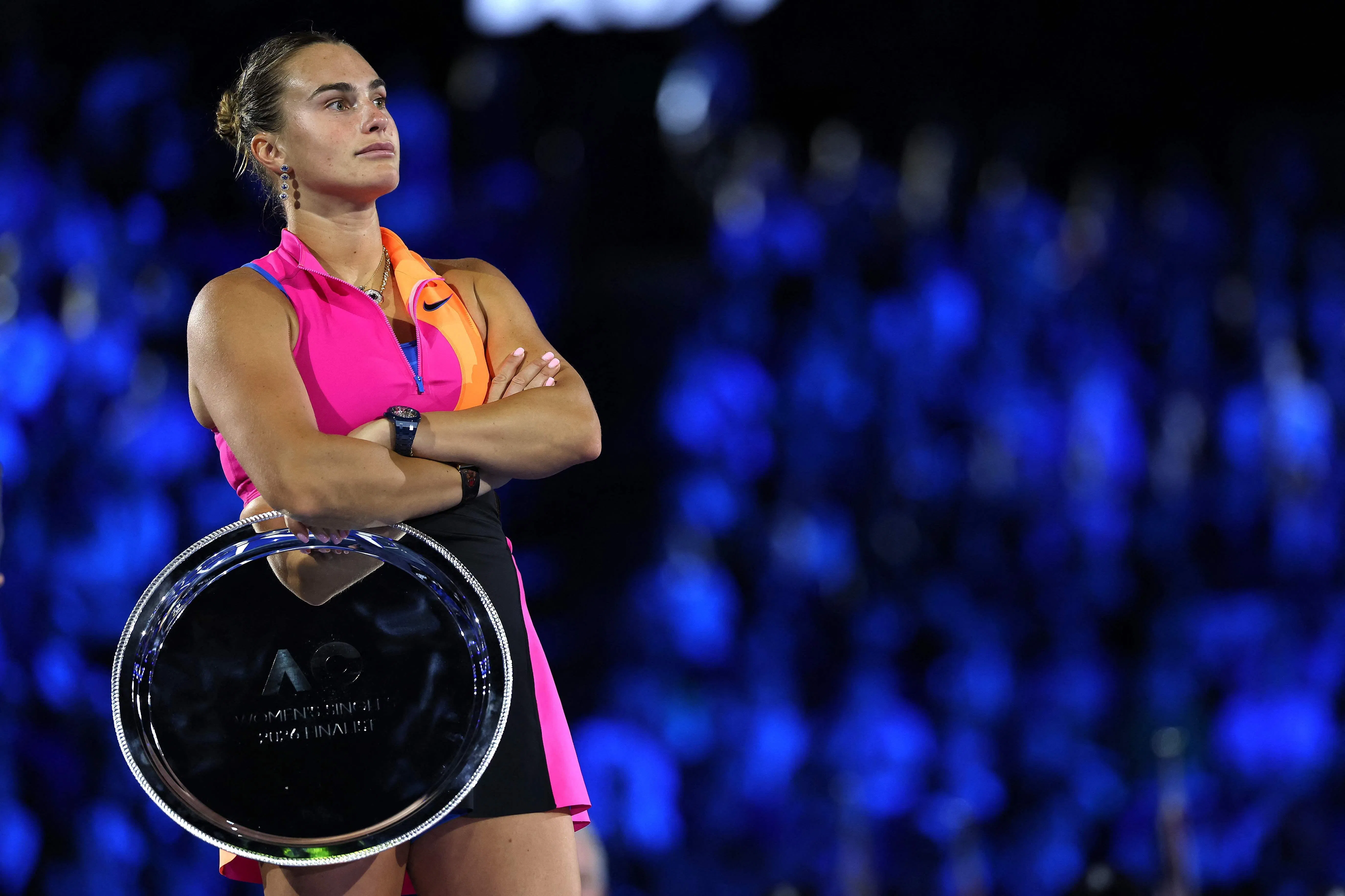 Belarus’ Aryna Sabalenka looks on with the runner-up shield after losing to Kazakhstan’s Elena Rybakina in the Australian Open.