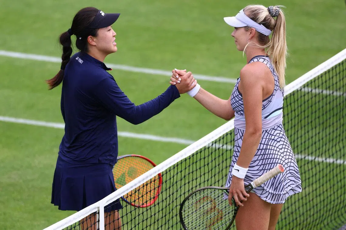 China’s Zhu Lin (left), ranked 39th, had defeated British No. 1 Katie Boulter 7-5, 7-5 in the first round on the Birmingham grass
