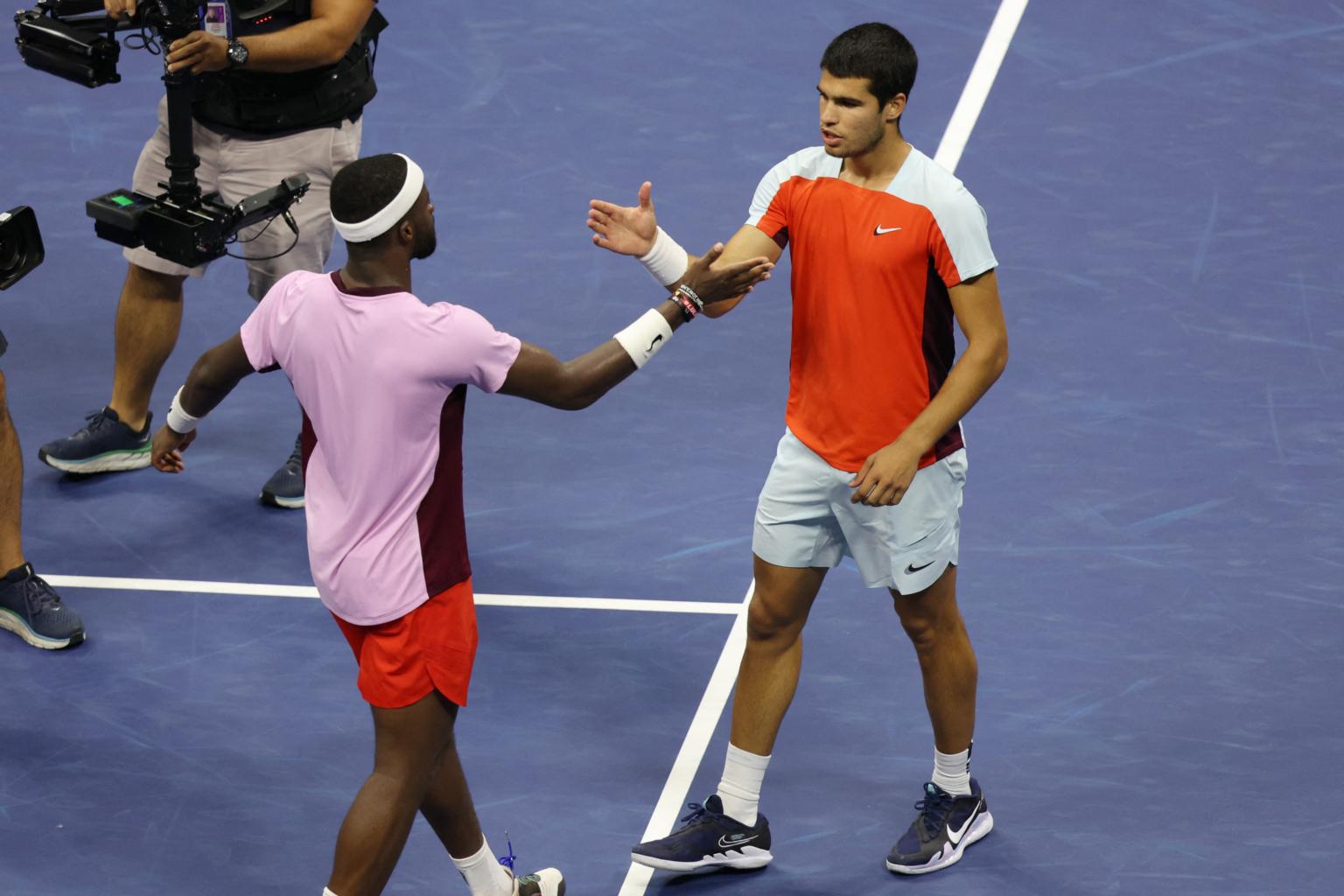 Frances Tiafoe (left) and Carlos Alcaraz after their US Open semi-final match on Sept 9, 2022.