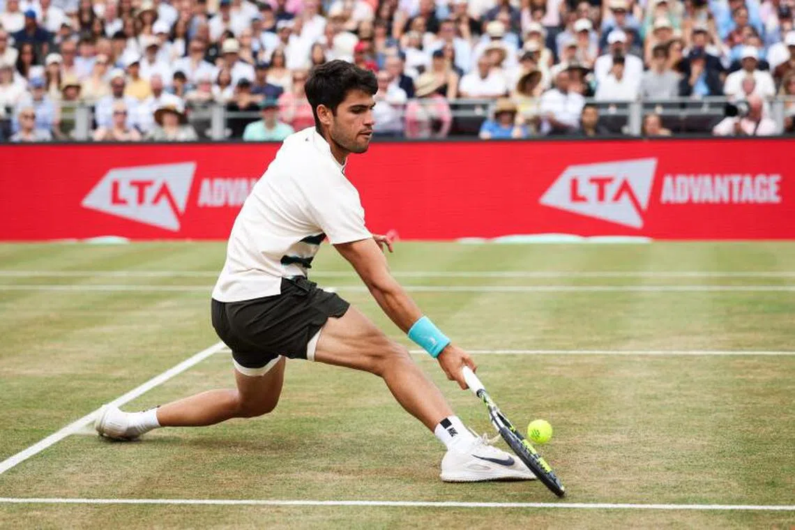 LONDON – Top seed Carlos Alcaraz edged out Czech Jiri Lehecka 7-5, 6-7 (5-7), 6-2 to claim his second Queen’s Club title on June 22 and send out a powerful statement ahead of his Wimbledon defence.
