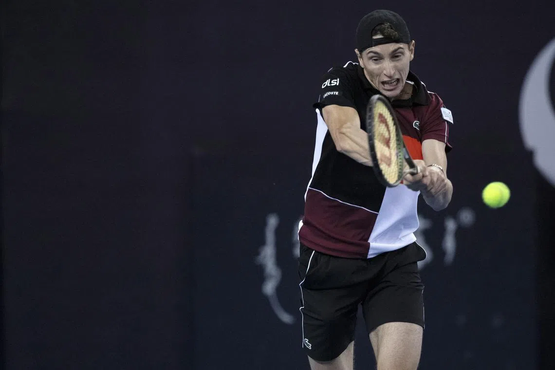 France’s Ugo Humbert in action against Andrey Rublev.