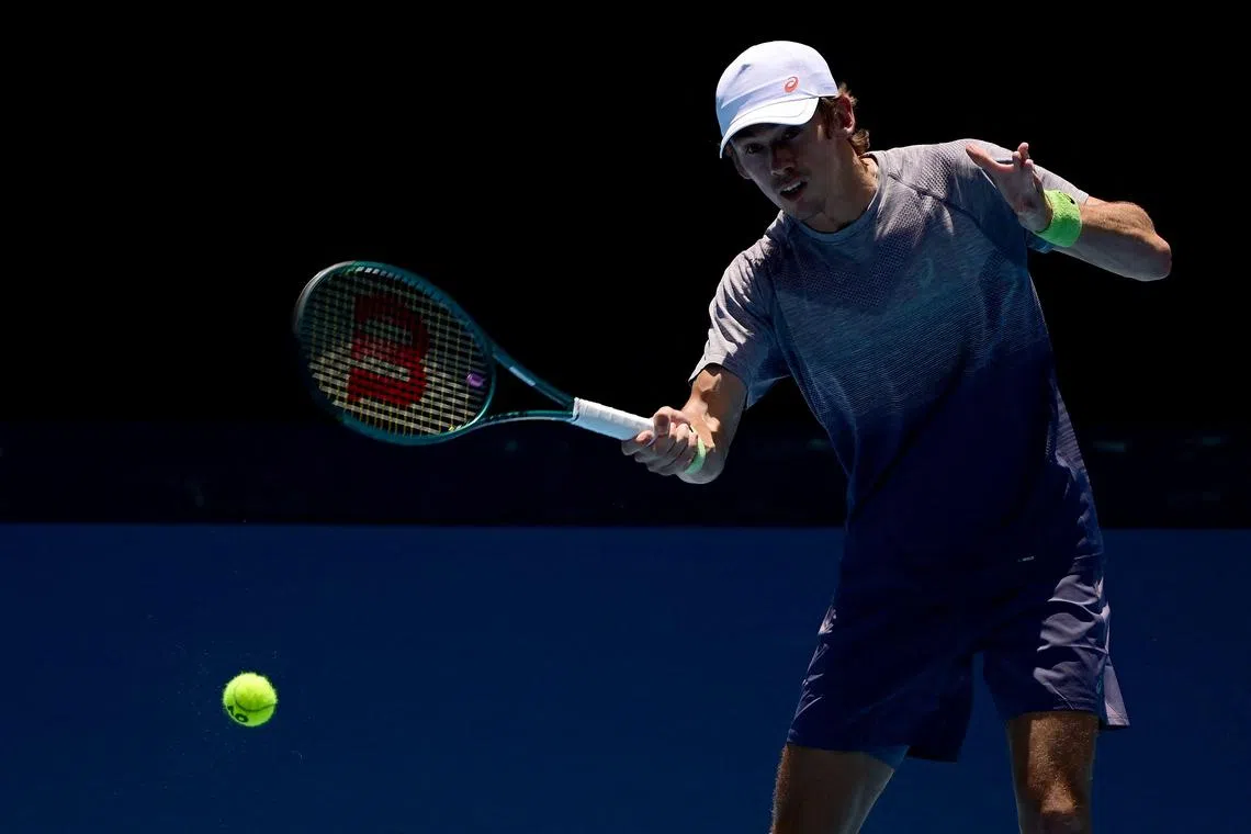 Australia's Alex De Minaur hits a return during a practice session ahead of the Australian Open.