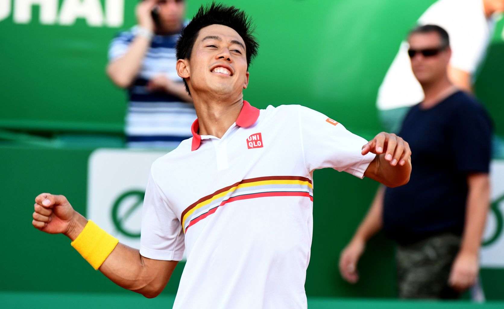 Nishikori celebrates his victory against Germany's Alexander Zverev.