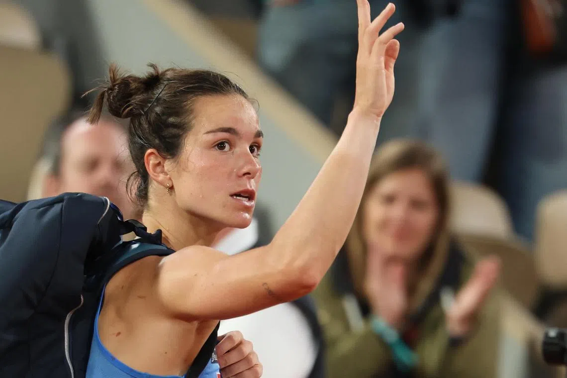 France’s Lois Boisson leaving the court after losing to Coco Gauff of the US on June 5.