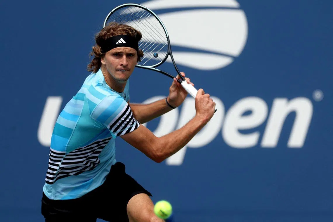 Germany’s Alexander Zverev of Germany returns a shot against Aleksandar Vukic of Australia.