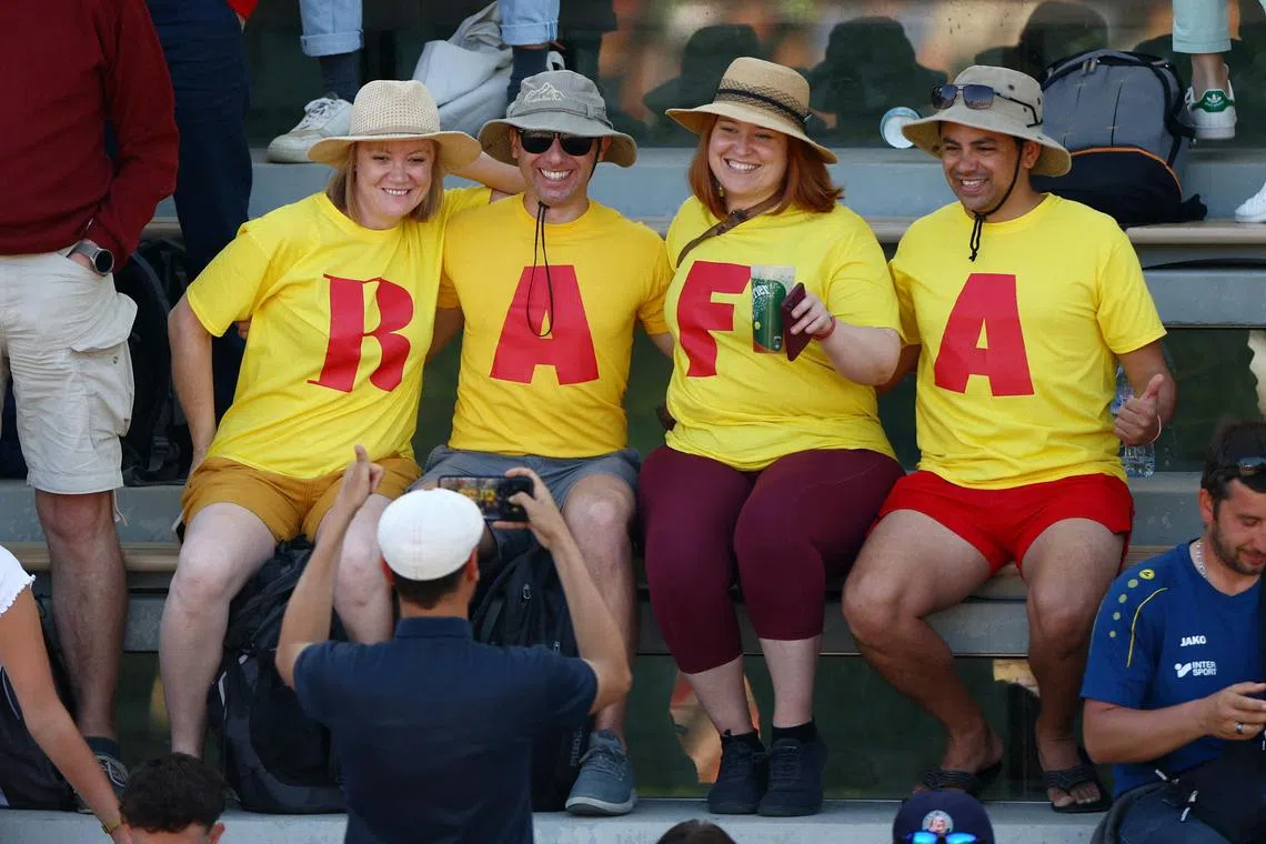 Rafael Nadal may be absent from the French Open but is present in spirit, as spectators wear shirts in support of the Spanish great.