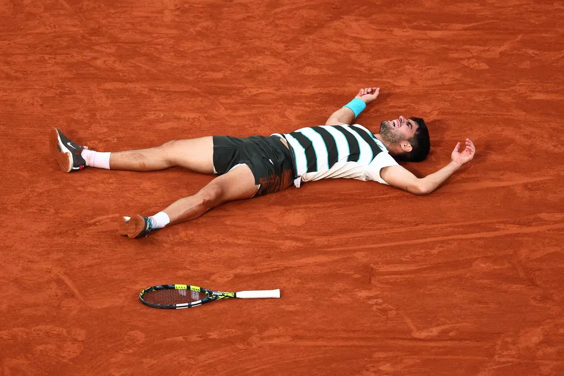 Spain’s Carlos Alcaraz celebrates after winning the men’s singles final against Italy’s Jannik Sinner.
