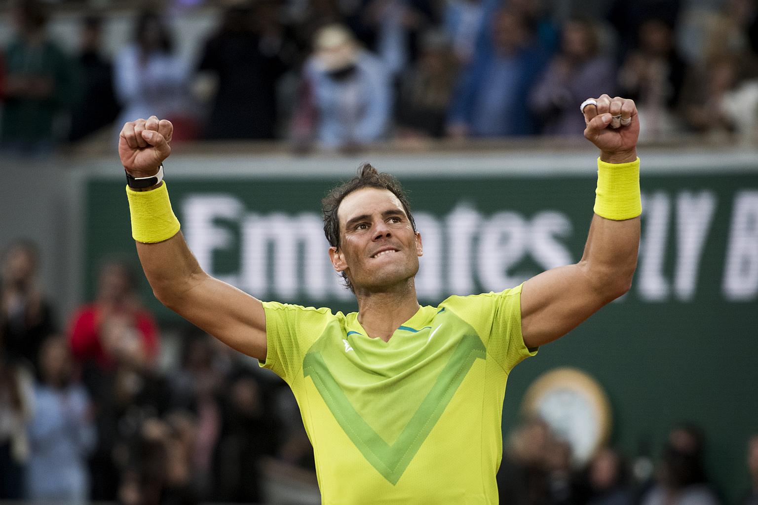 Rafael Nadal winning his fourth-round match against Felix Auger-Aliassime of Canada in five sets on May 29, 2022.