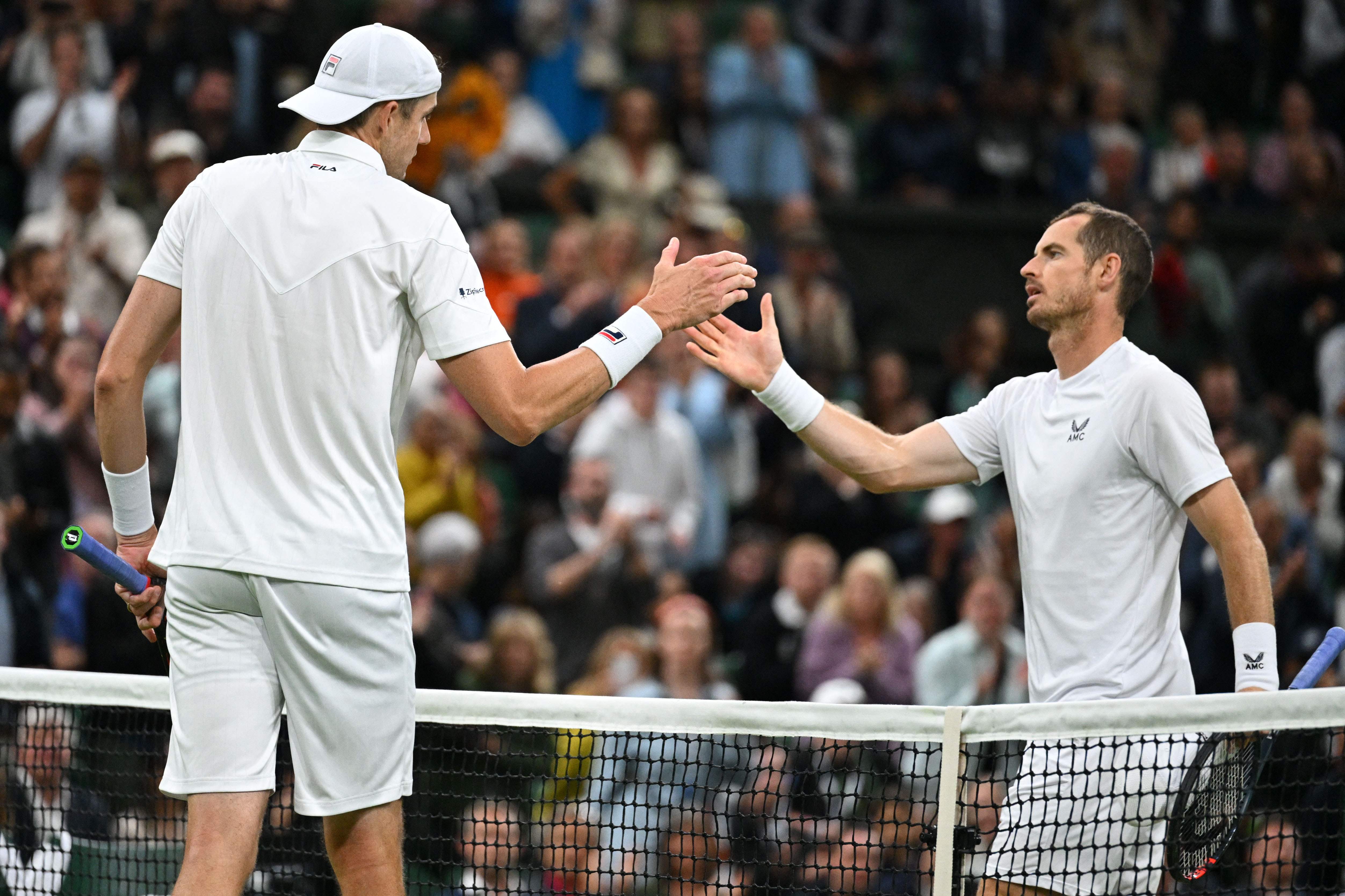 Britain's Andy Murray (right) shakes hands with John Isner of the US after their match.