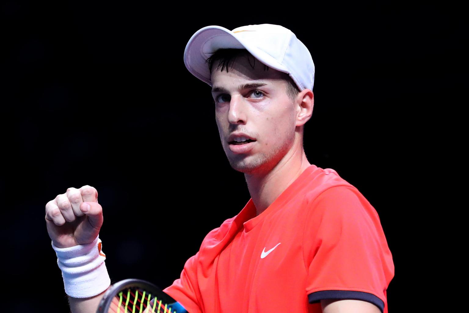 Adrian Andreev (above) in action during his Singapore Tennis Open first-round victory against Lloyd Harris.