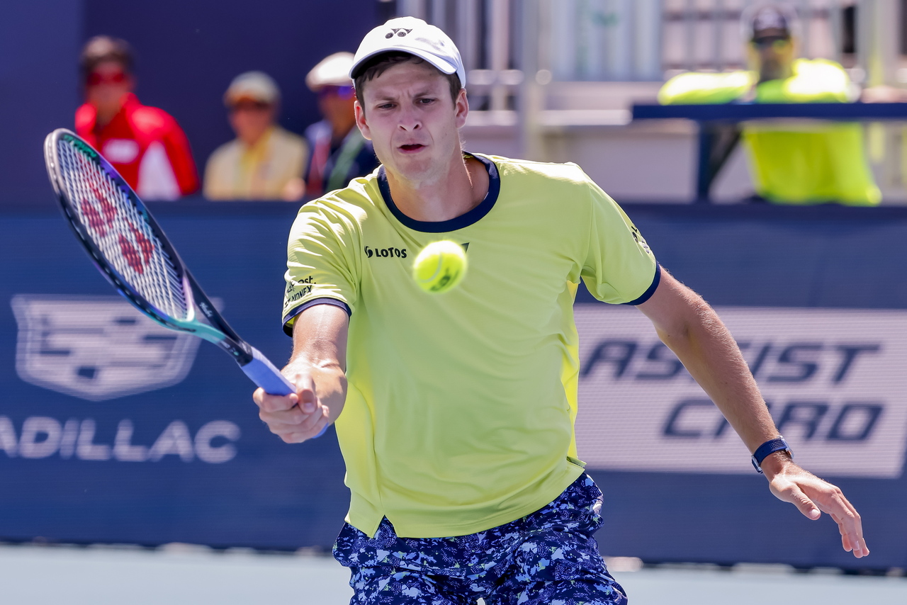 (REUTERS) - Hubert Hurkacz unleashed 17 aces to topple France's Arthur Rinderknech 7-6 (7-5), 6-2 and keep his title defence going at the Miami Open on Saturday (March 26) as world No. 2 Daniil Medvedev sent two-time winner Andy Murray packing and Naomi Osaka advanced on a walkover.
