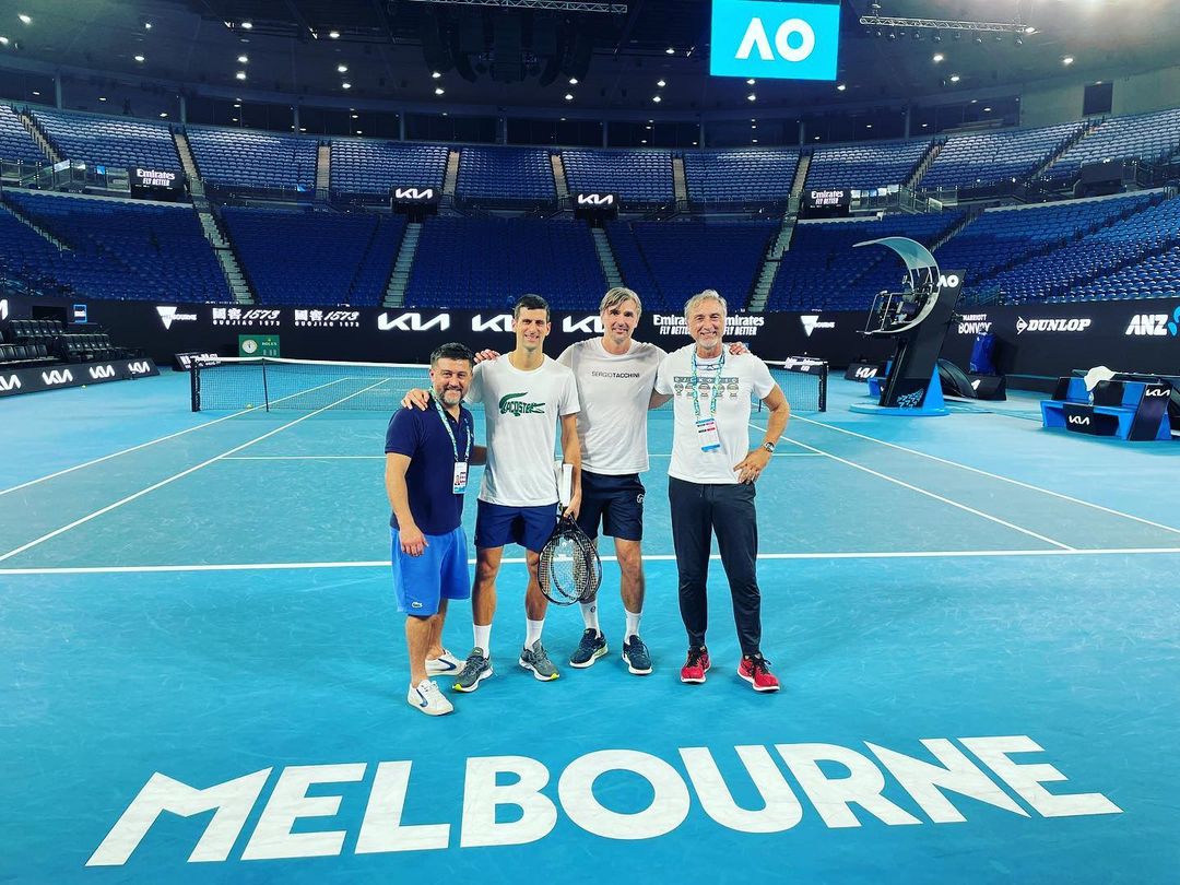 Novak Djokovic (second from left) posted a picture with his team from Melbourne Park after being released from Australian immigration detention.