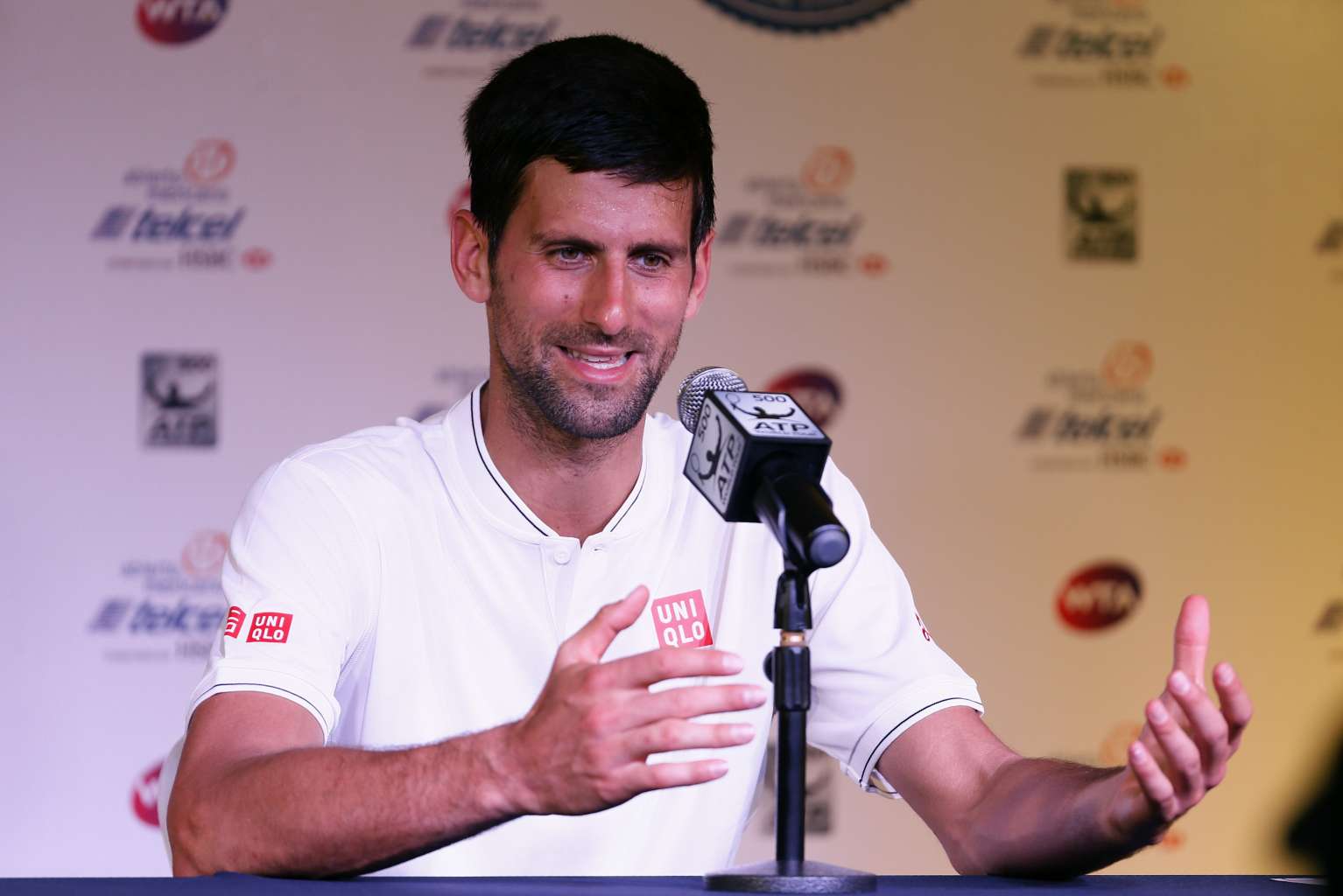 Novak Djokovic speaking at a press conference in Acapulco, Mexico, on Feb 27, 2017.