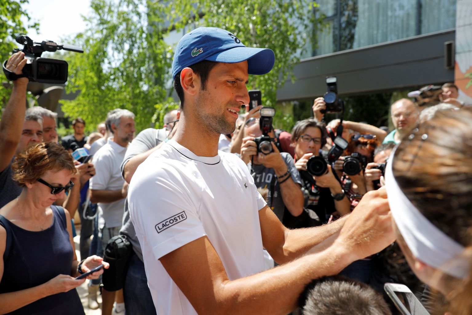 Djokovic signs autographs after a training session in Belgrade, Serbia, May 2, 2018.