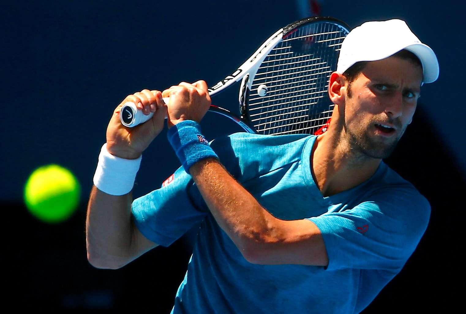 Djokovic hits a shot during a training session ahead of the Australian Open, Jan 12, 2017.